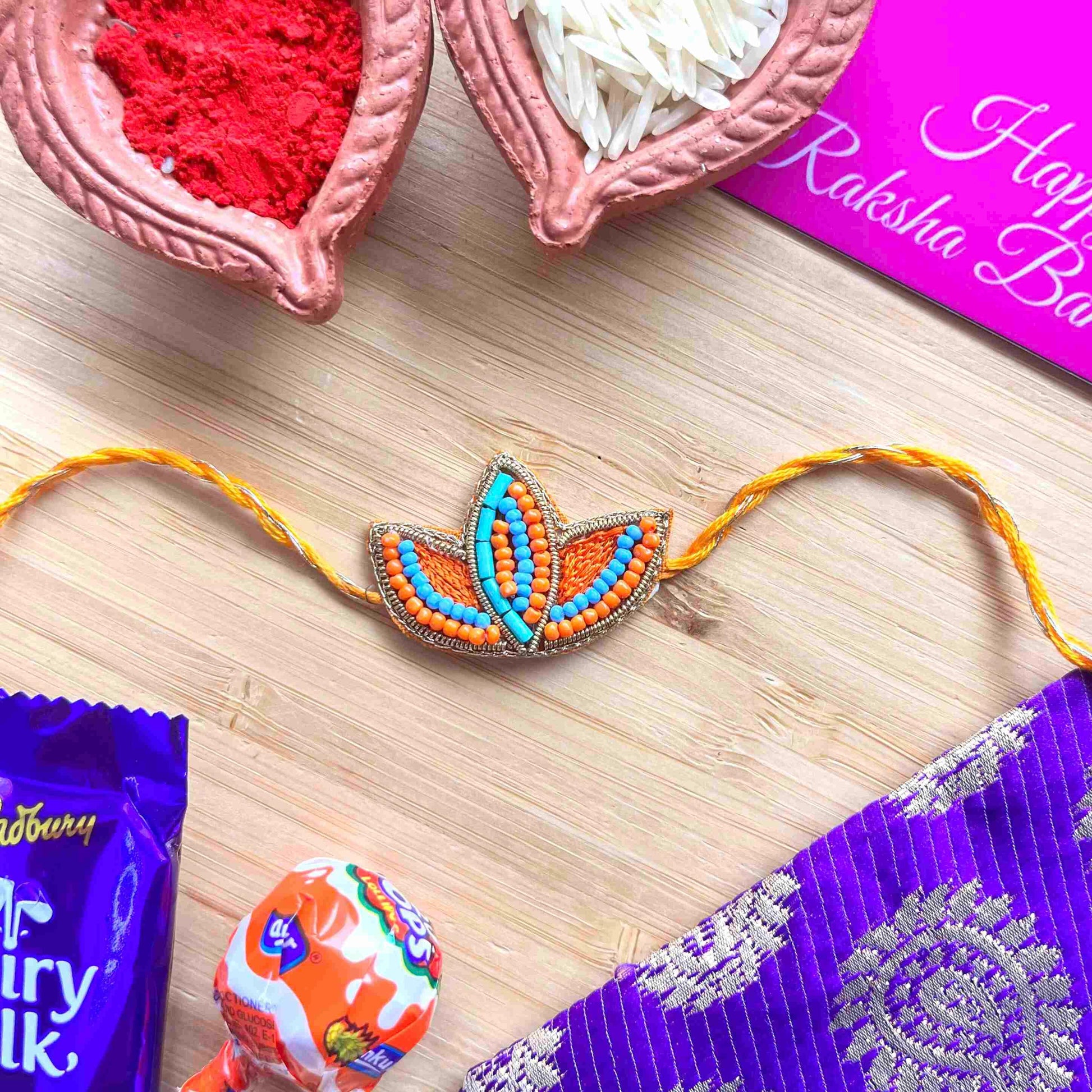 Elevate your Raksha Bandhan celebrations with our DIA RAKHI. This beautiful mini Rakhi features exquisite dia stones and comes in perfect colors to add a touch of elegance to your festivities. Show your love and appreciation for your siblings with our stunning DIA RAKHI.