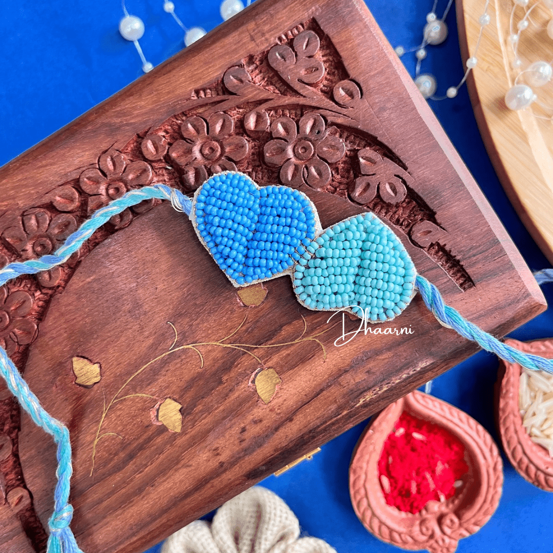 Enhance the bond of brother-sister love with the Do Dil Rakhi- Blue, a double heart blue Rakhi. Crafted with intricate details, this Rakhi symbolizes the eternal bond of love between siblings. Made with high-quality materials, this Rakhi is not only beautiful but also durable. Celebrate the occasion with this unique and meaningful Rakhi.
