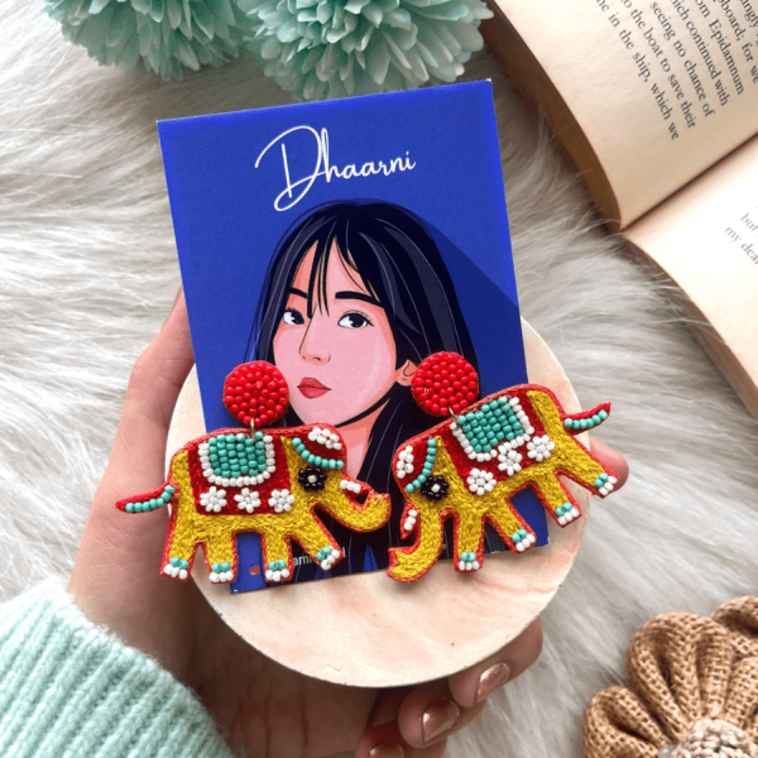 Upgrade your festive wear with Giri Raj Earrings! These statement earrings feature intricately beaded elephants, adding a cute touch to your outfit. The high-quality threading ensures durability, making them a must-have for any occasion. Step up your style game with these festive earrings!