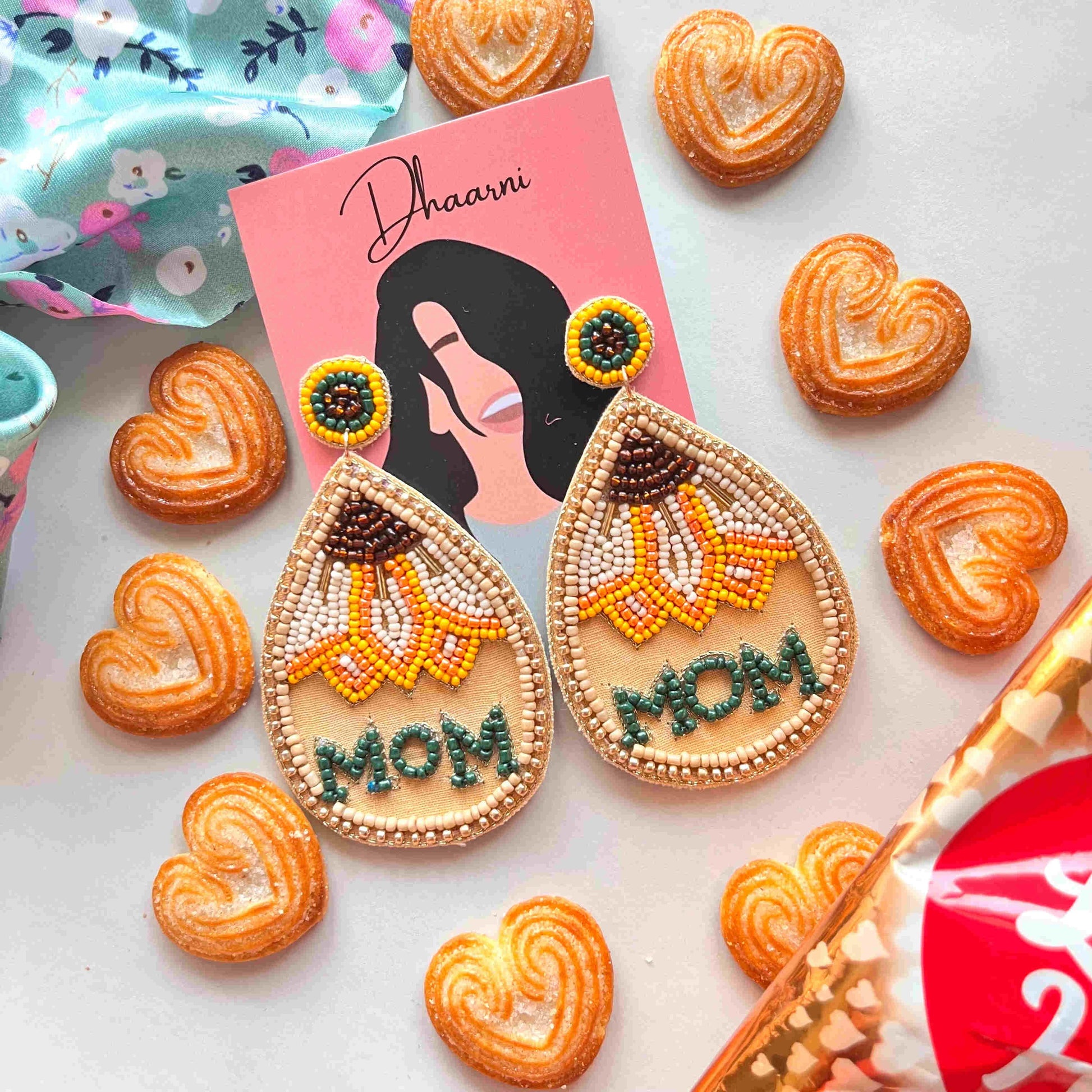 MOM Aesthetic Earrings - Treat your mom to these beautiful beige earrings, perfect for adding an elegant touch to any outfit. Designed with a mother's love in mind, these make a great gift for any occasion. Adorn her ears with these stunning earrings and show how much she means to you.