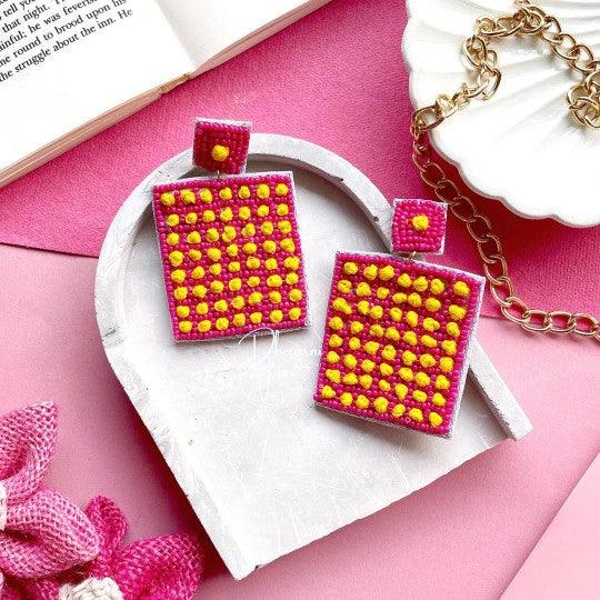 High Quality Embroidered Handmade Earrings. Handcrafted by skilled artisans, these earrings are super lighweighed and feature a unique and vibrant design that is sure to turn heads.