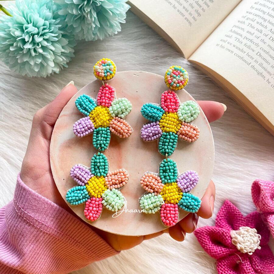 Handcrafted Earrings are made with love by hand with attention to detail using materials such as beads, Gemstones, Pearls, Threads, Zari and other exciting items.