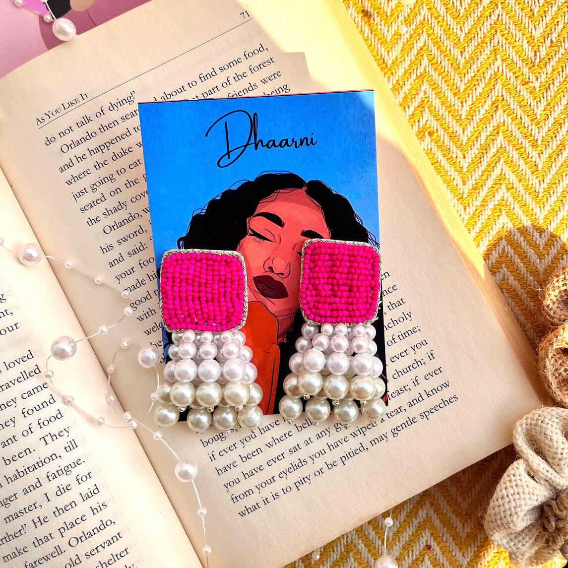 These handmade hot pink pearl earrings make a statement with their stunning design and falling pearl feature. Each earring exudes elegance and sophistication with a unique touch, crafted to perfection for a one-of-a-kind accessory. Perfect for adding a pop of color to any outfit.