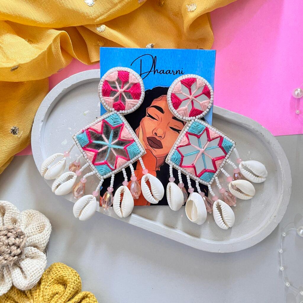 High Quality Embroidered Handmade Earrings. Handcrafted by skilled artisans, these earrings are super lighweighed and feature a unique and vibrant design that is sure to turn heads.