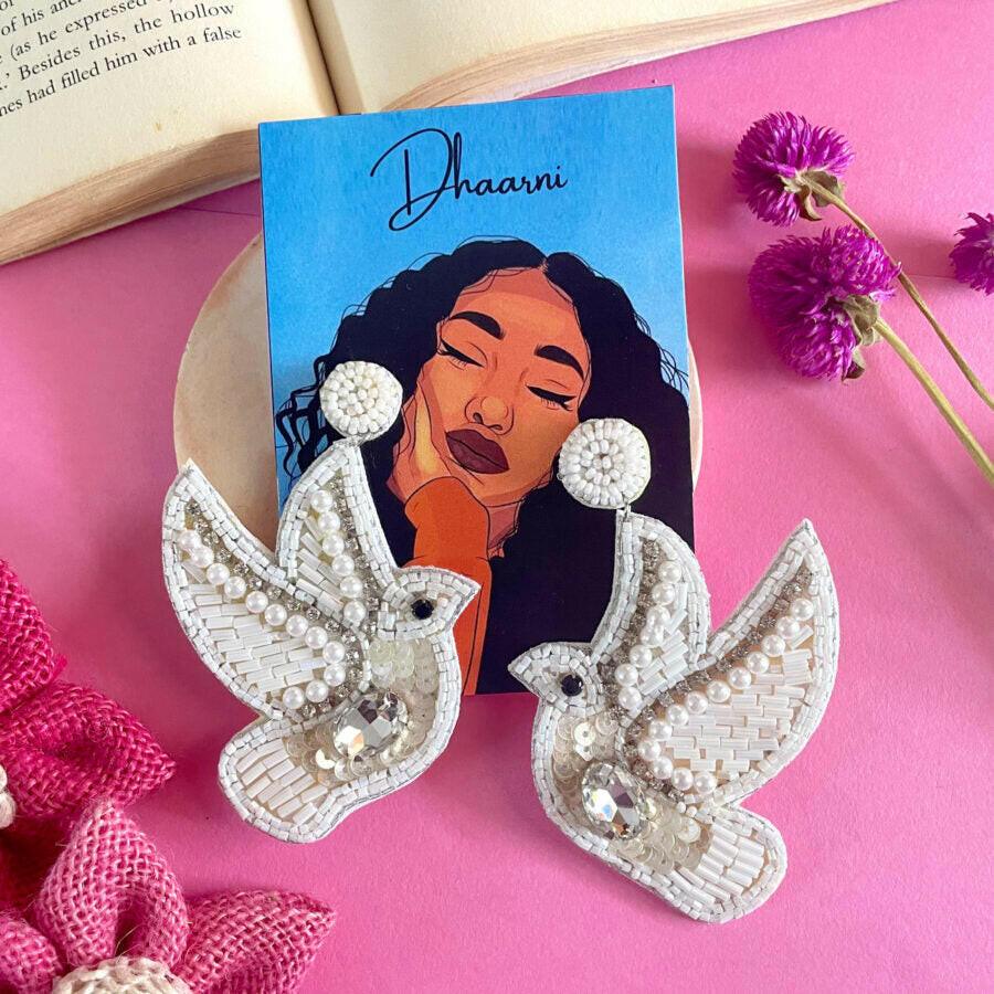 Handcrafted Earrings are made with love by hand with attention to detail using materials such as beads, Gemstones, Pearls, Threads, Zari, and other exciting items.