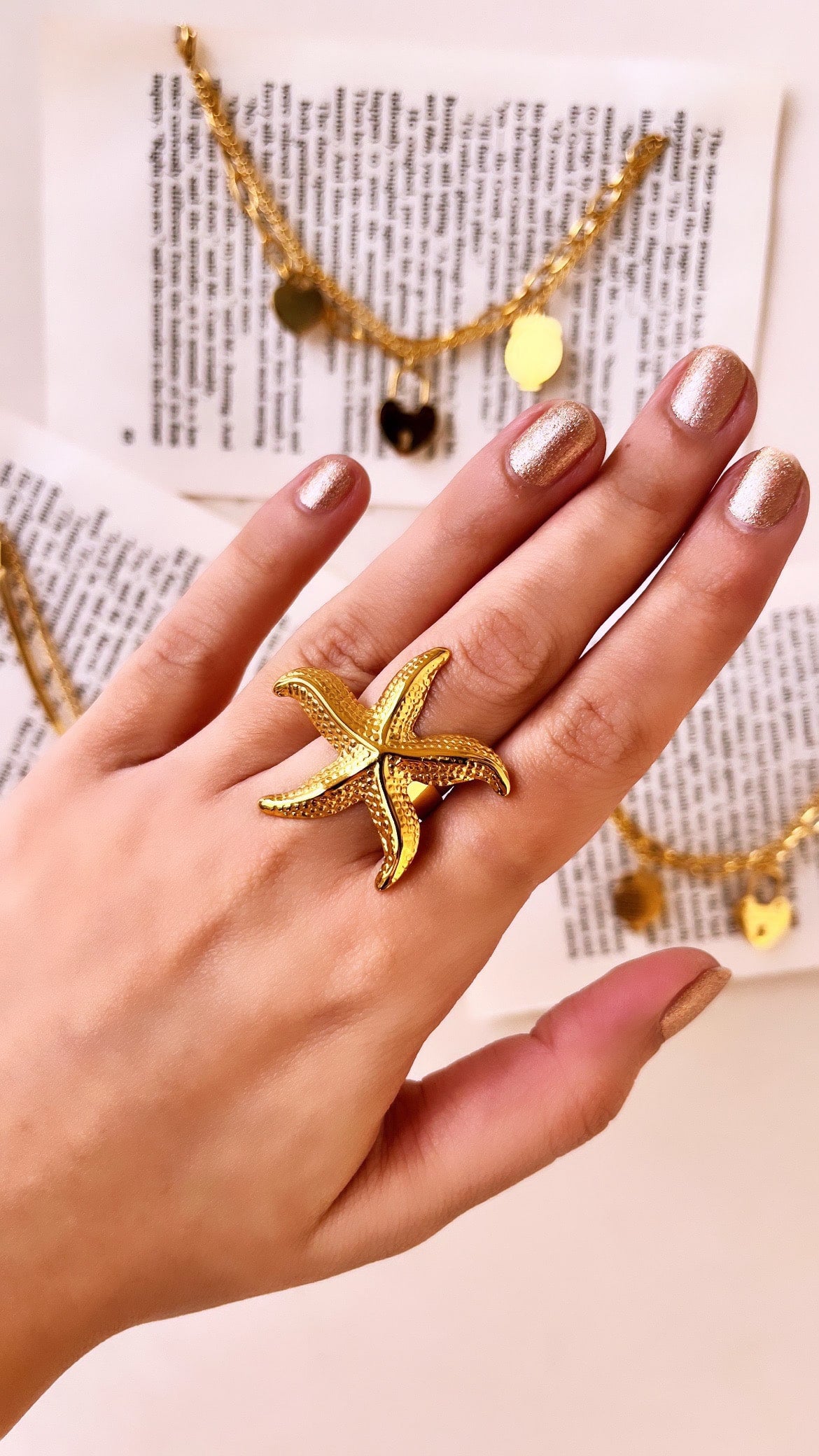 This anti-tarnish Star Ring is the perfect gift for your loved one. Made with exceptional craftsmanship, this ring features a beautiful star design that will add a touch of elegance to any outfit. It's highly durable and will maintain its shine for years to come. Show your love with this stunning Star Ring.
