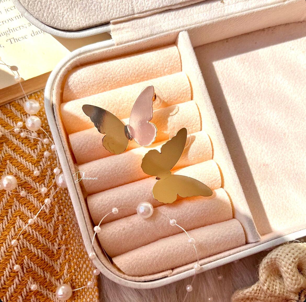 Introducing our Premium Brass Antitarnish Mini Butterfly Shape Earrings - the perfect addition to your jewelry collection. Made with high-quality brass, these earrings are not only cute and stylish but also resistant to tarnishing. Elevate any outfit with these golden mini earrings.