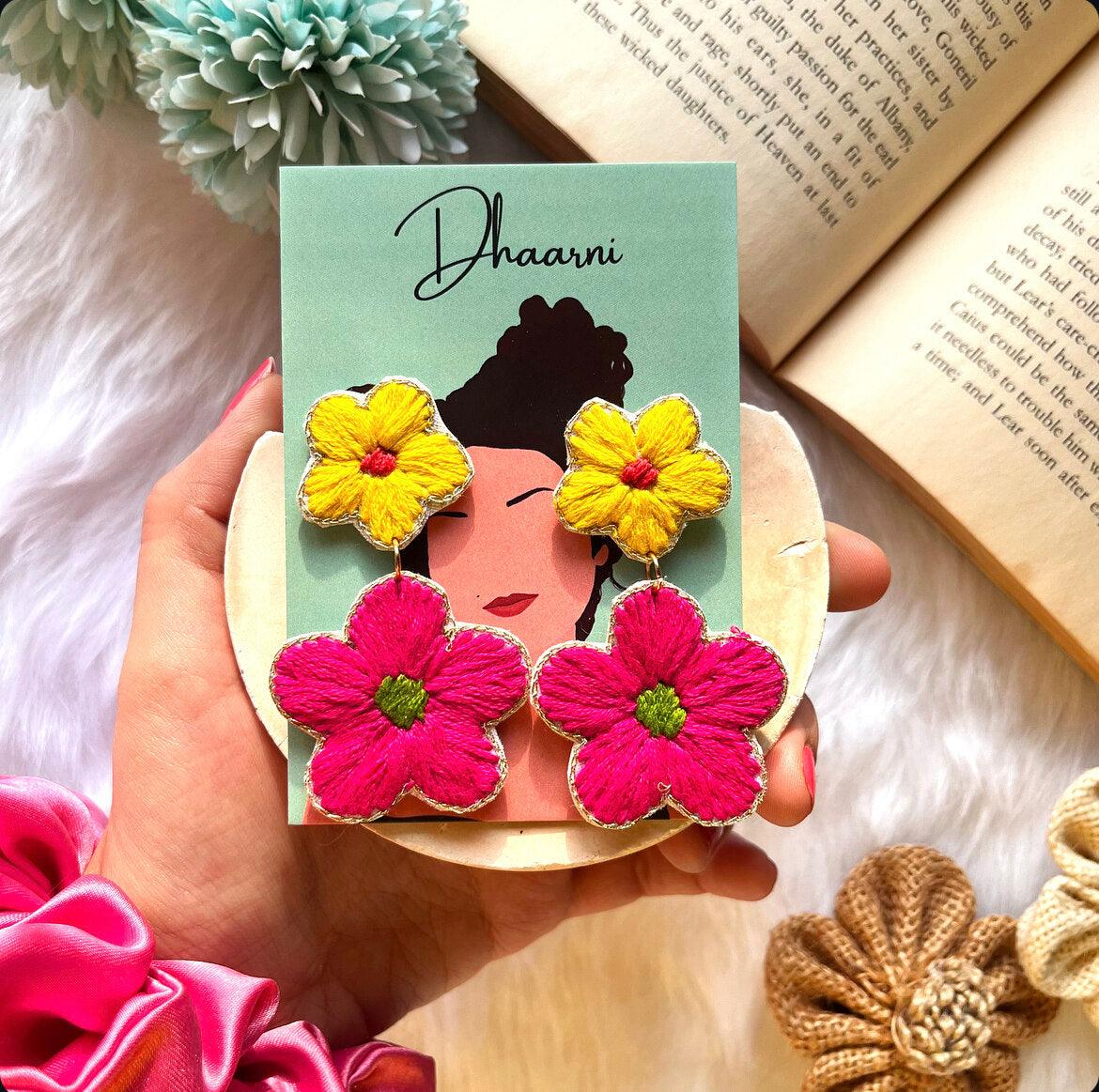 Introducing Flower Mom - the perfect accessory for summer outings! Made with premium yellow and pink threads, these earrings are sure to add a touch of fun and style to any outfit. Experience the beauty of nature with these colorful thread earrings. Order now!