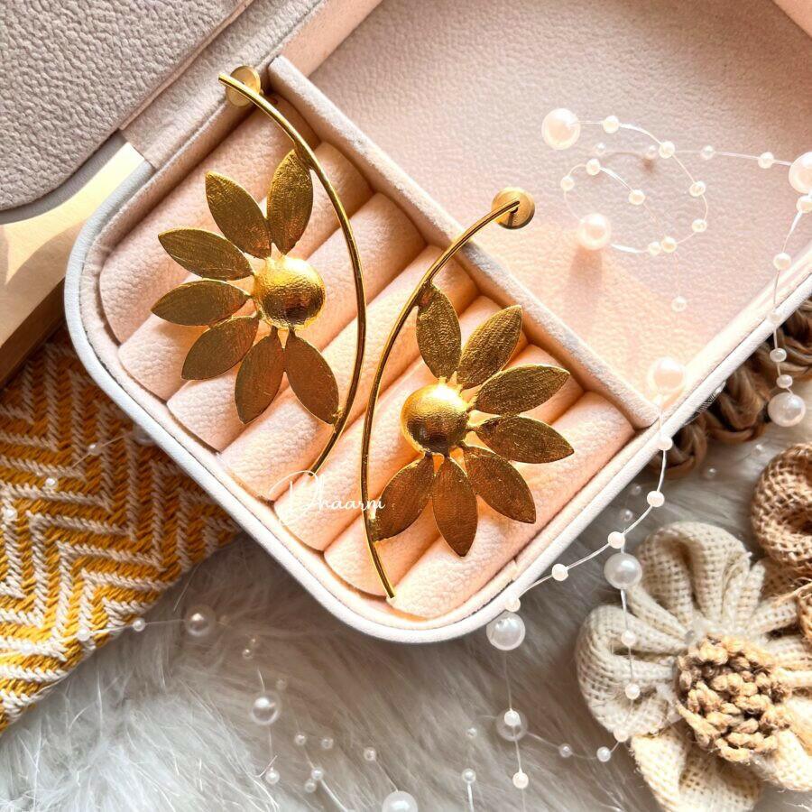 Crafted from high-quality brass and plated with premium gold, these earrings make a bold statement with their sun-inspired design.